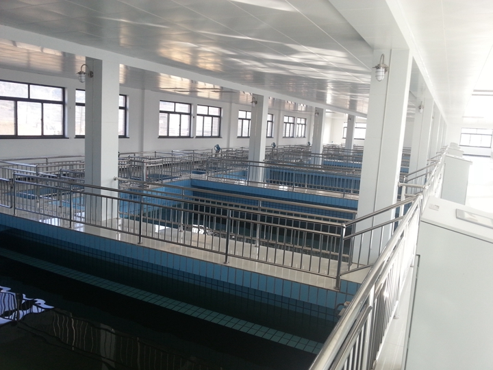 工程規(guī)模:建設規(guī)模5萬m3/d,將現(xiàn)有折板反應+斜管沉淀+普通快濾池工藝(2.5萬m3/d ),隔板反應+斜管沉淀+無閥濾池(1.9萬m3/d ),水力循環(huán)澄清池+無閥濾池(0.6萬m3/d )三個序列凈水設施整合改造為以平流沉淀池+V型濾池為主的凈水工藝,出水水質(zhì)滿足《生活飲用水衛(wèi)生標準》(GB5749-2006)的要求。