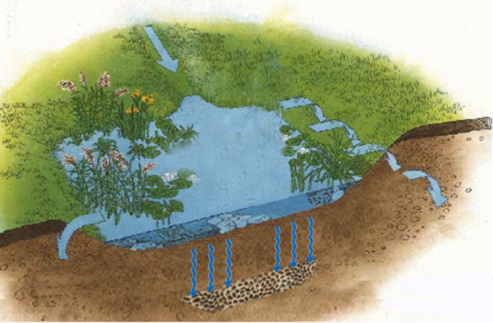 主要通過建設(shè)旱溪,滯留塘,PP蓄水模塊,透水鋪裝等低影響開發(fā)的設(shè)施,并將雨水調(diào)蓄設(shè)施與景觀相結(jié)合,給游人打造開放式的景觀游園。滯留塘深度約0.4m,并設(shè)置溢流井,超量雨水通過溢流井進入雨水管道。
